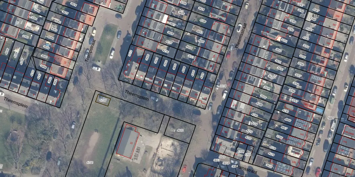 Het perceel waarop Theemsplein 18 staat heeft een oppervlakte van 112 m². Dit is een middelgroot perceel. De perceeloppervlakte wordt geregistreerd door het Kadaster. Gedetailleerde informatie over de maten van dit perceel kunt u vinden in het rapport Kadastrale kaart met maatvoering van Theemsplein 18.