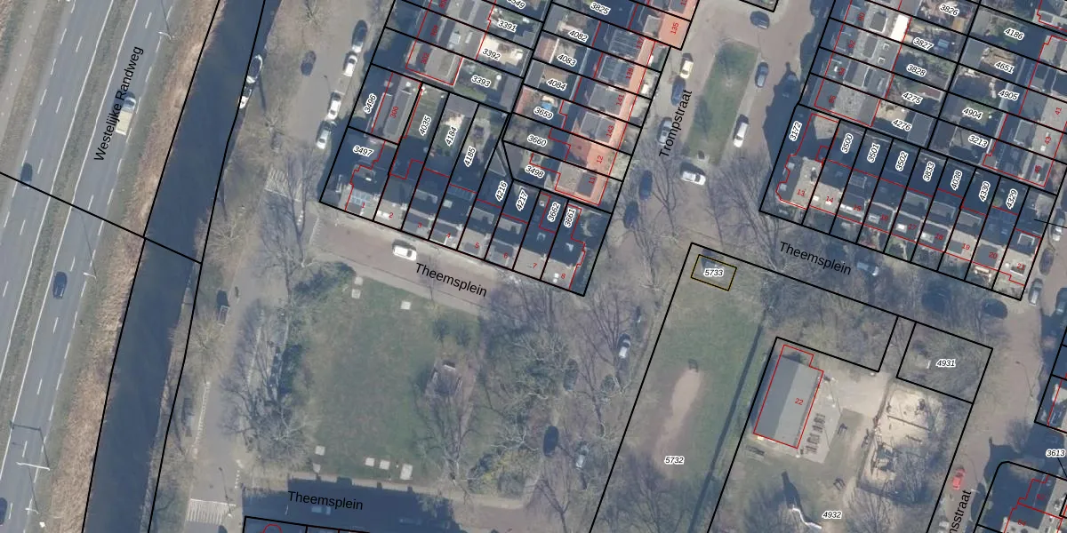 Theemsplein 7 is gelegen op kadastraal perceel HLM01I3662. Deze kadastrale aanduiding is uniek en wordt gebruikt door het Kadaster om eigendomsrechten en andere zakelijke rechten vast te leggen. Het perceel maakt onderdeel uit van de kadastrale gemeente Haarlem.