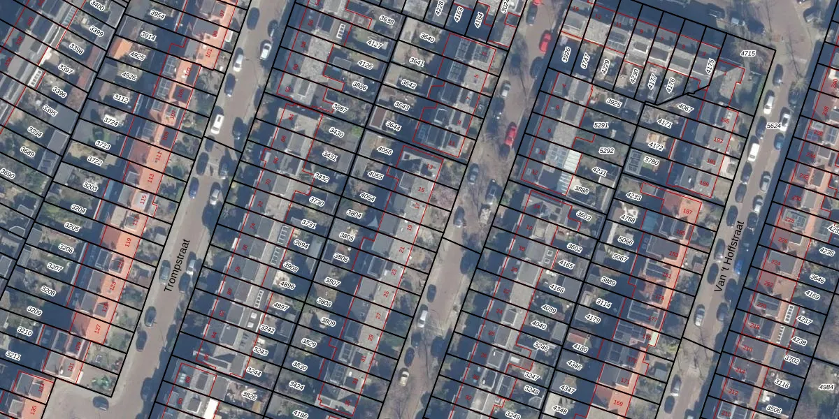 Gebruik de zoekbalk of klik op een perceel voor informatie over de adressen binnen dit perceel.