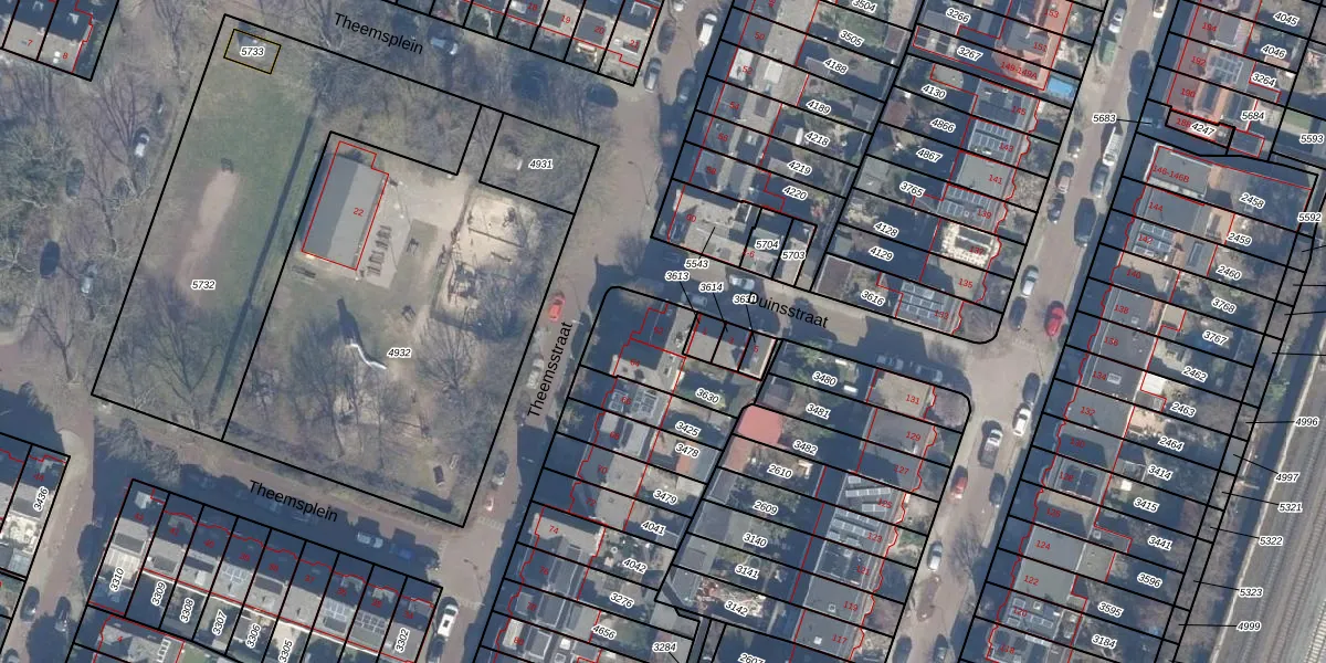 Theemsstraat 62 is gelegen op kadastraal perceel HLM01I3630. Deze kadastrale aanduiding is uniek en wordt gebruikt door het Kadaster om eigendomsrechten en andere zakelijke rechten vast te leggen. Het perceel maakt onderdeel uit van de kadastrale gemeente Haarlem.