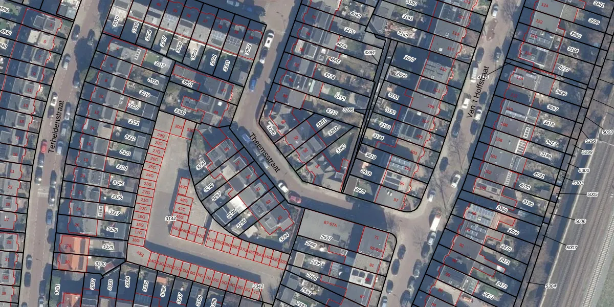 Het perceel waarop Theemsstraat 92 staat heeft een oppervlakte van 129 m². Dit is een middelgroot perceel. De perceeloppervlakte wordt geregistreerd door het Kadaster. Gedetailleerde informatie over de maten van dit perceel kunt u vinden in het rapport Kadastrale kaart met maatvoering van Theemsstraat 92.