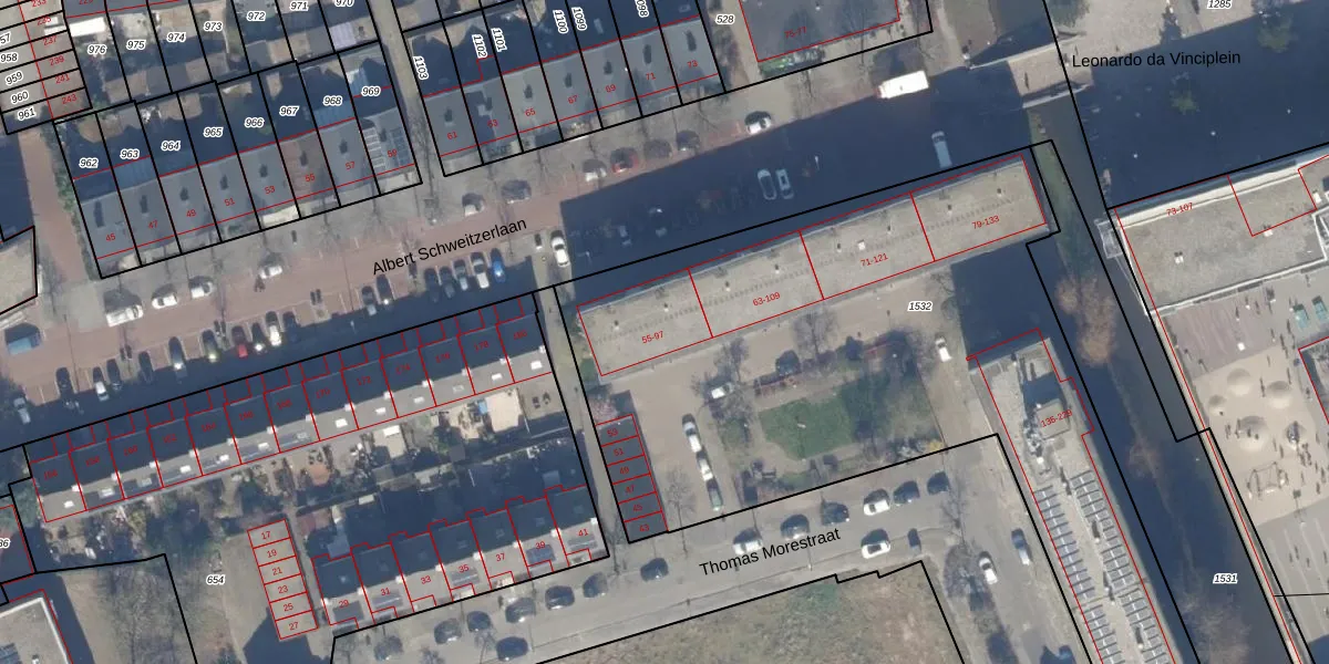 Thomas Morestraat 93 is gelegen op kadastraal perceel HLM02X1532. Deze kadastrale aanduiding is uniek en wordt gebruikt door het Kadaster om eigendomsrechten en andere zakelijke rechten vast te leggen. Het perceel maakt onderdeel uit van de kadastrale gemeente Haarlem.