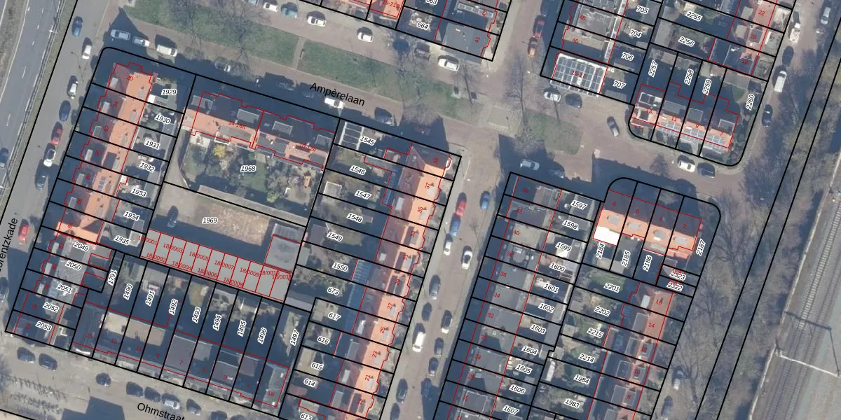 Gebruik de zoekbalk of klik op een perceel voor informatie over de adressen binnen dit perceel.
