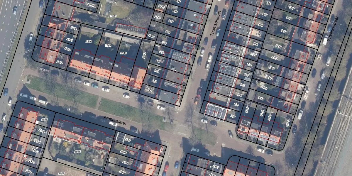 Het perceel waarop Thomsonlaan 43 staat heeft een oppervlakte van 145 m². Dit is een middelgroot perceel. De perceeloppervlakte wordt geregistreerd door het Kadaster. Gedetailleerde informatie over de maten van dit perceel kunt u vinden in het rapport Kadastrale kaart met maatvoering van Thomsonlaan 43.