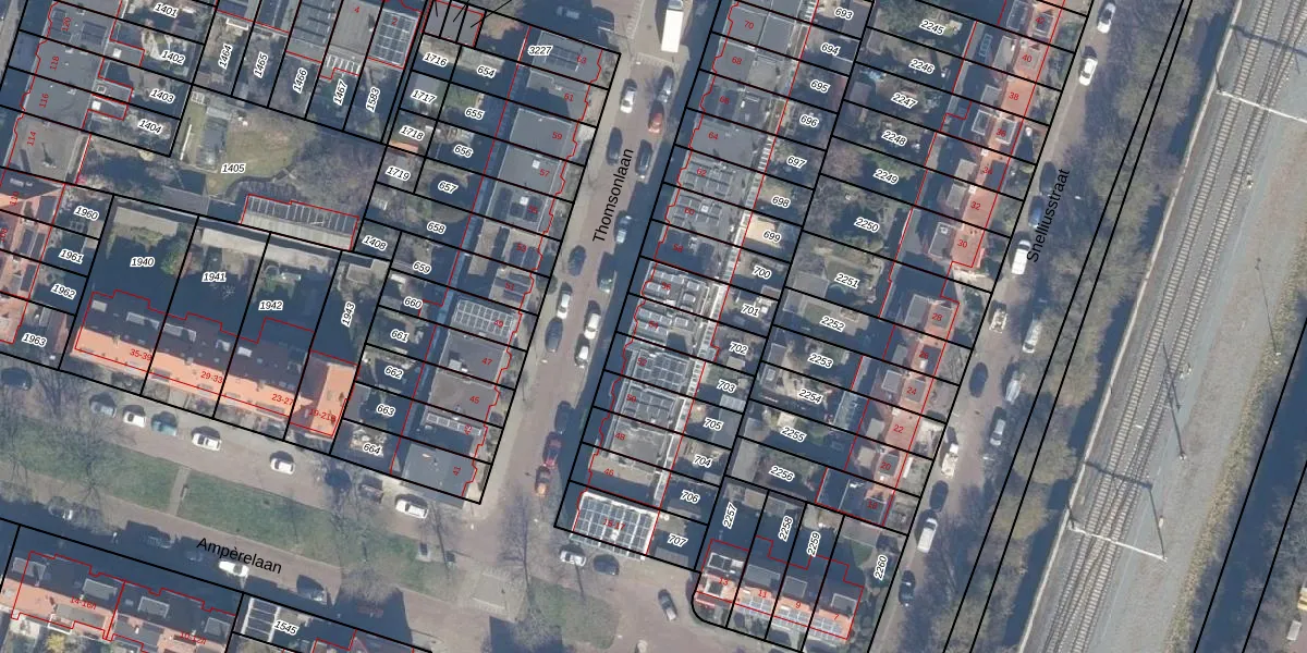Thomsonlaan 54 is gelegen op kadastraal perceel HLM02S702. Deze kadastrale aanduiding is uniek en wordt gebruikt door het Kadaster om eigendomsrechten en andere zakelijke rechten vast te leggen. Het perceel maakt onderdeel uit van de kadastrale gemeente Haarlem.