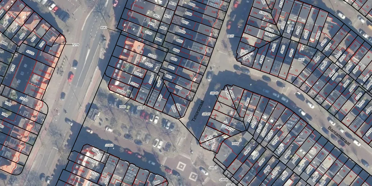 Het perceel waarop Timorstraat 111 staat heeft een oppervlakte van 82 m². Dit is een klein perceel. De perceeloppervlakte wordt geregistreerd door het Kadaster. Gedetailleerde informatie over de maten van dit perceel kunt u vinden in het rapport Kadastrale kaart met maatvoering van Timorstraat 111.