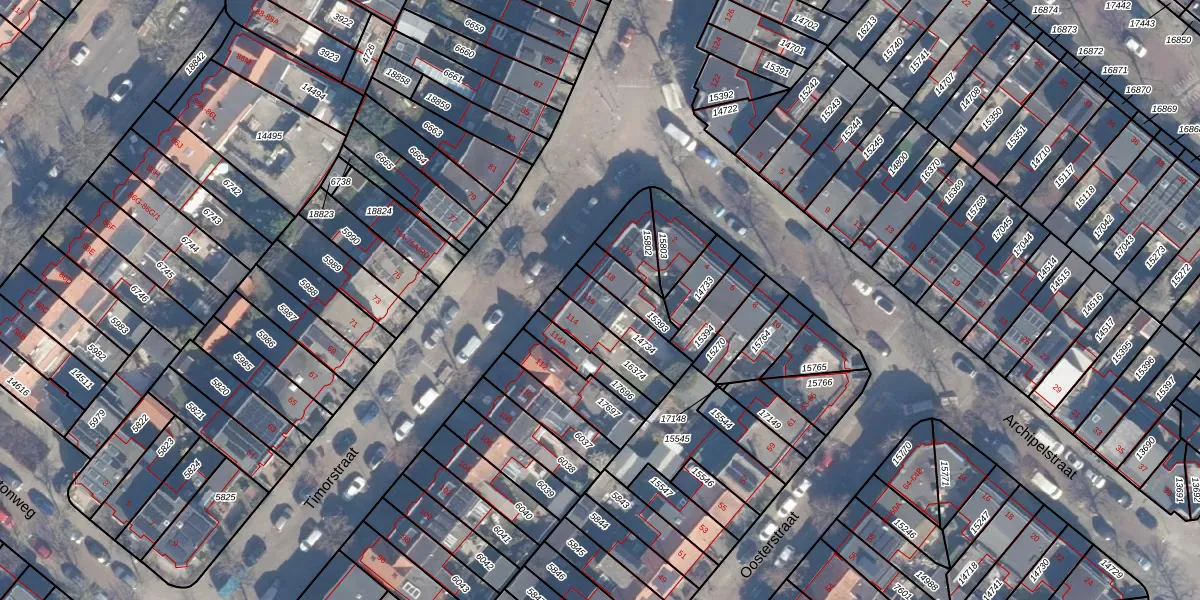 Gebruik de zoekbalk of klik op een perceel voor informatie over de adressen binnen dit perceel.