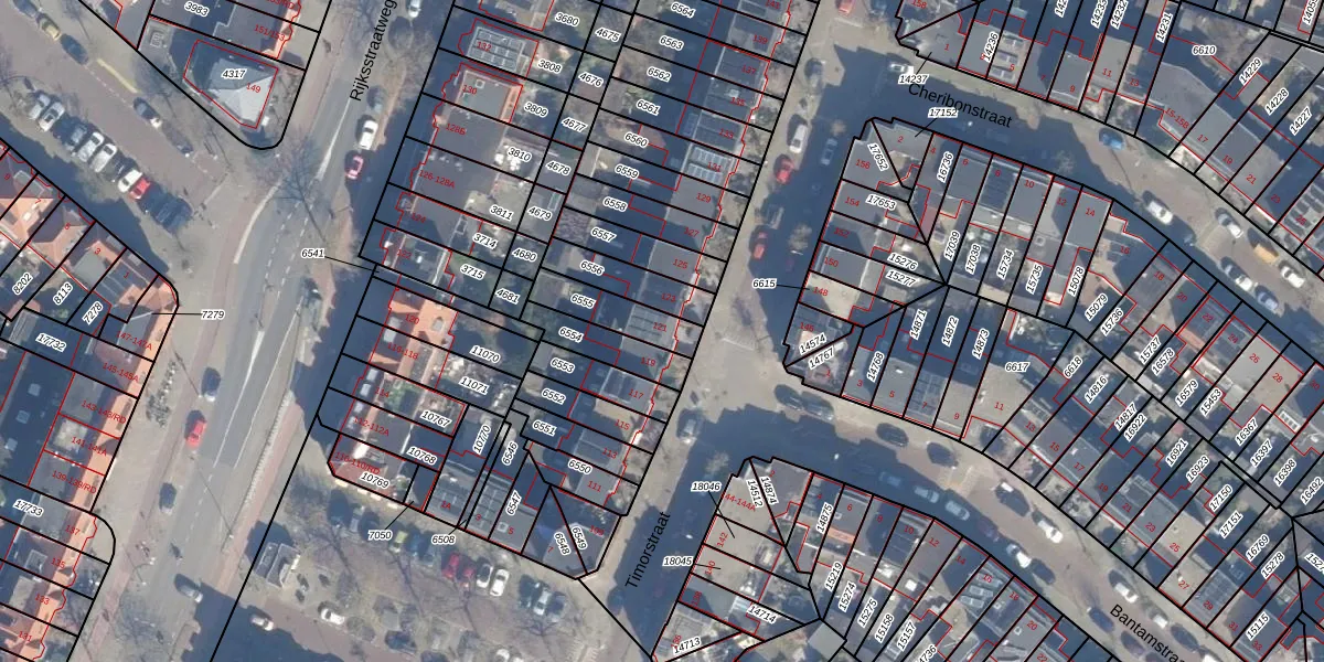 Gebruik de zoekbalk of klik op een perceel voor informatie over de adressen binnen dit perceel.