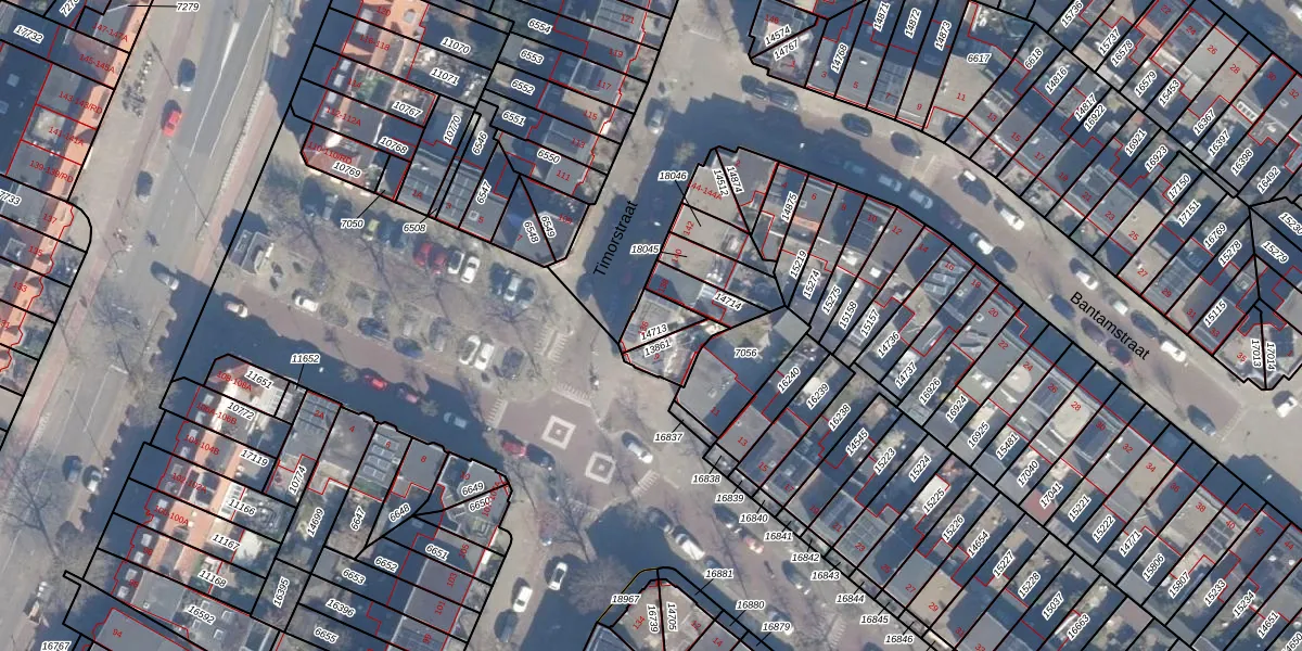 Het perceel waarop Timorstraat 136 staat heeft een oppervlakte van 65 m². Dit is een klein perceel. De perceeloppervlakte wordt geregistreerd door het Kadaster. Gedetailleerde informatie over de maten van dit perceel kunt u vinden in het rapport Kadastrale kaart met maatvoering van Timorstraat 136.