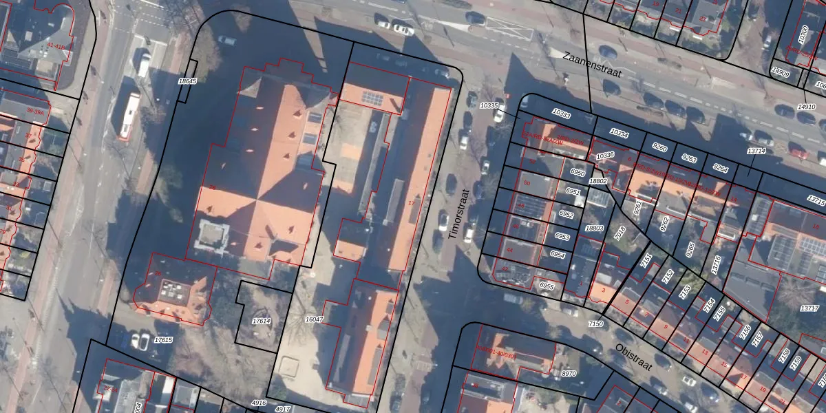 Gebruik de zoekbalk of klik op een perceel voor informatie over de adressen binnen dit perceel.