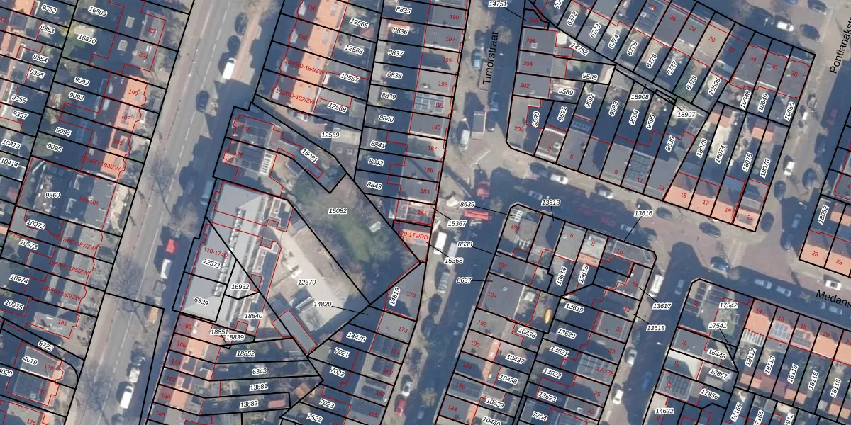 Het perceel waarop Timorstraat 181 staat heeft een oppervlakte van 80 m². Dit is een klein perceel. De perceeloppervlakte wordt geregistreerd door het Kadaster. Gedetailleerde informatie over de maten van dit perceel kunt u vinden in het rapport Kadastrale kaart met maatvoering van Timorstraat 181.