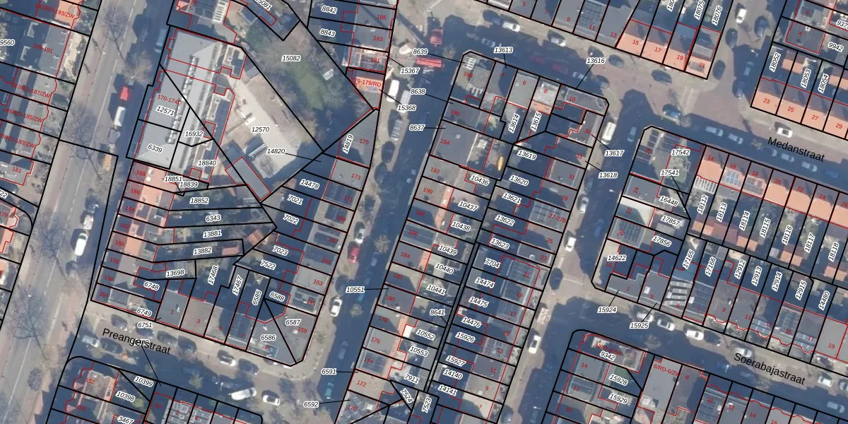 Het perceel waarop Timorstraat 188 staat heeft een oppervlakte van 92 m². Dit is een klein perceel. De perceeloppervlakte wordt geregistreerd door het Kadaster. Gedetailleerde informatie over de maten van dit perceel kunt u vinden in het rapport Kadastrale kaart met maatvoering van Timorstraat 188.