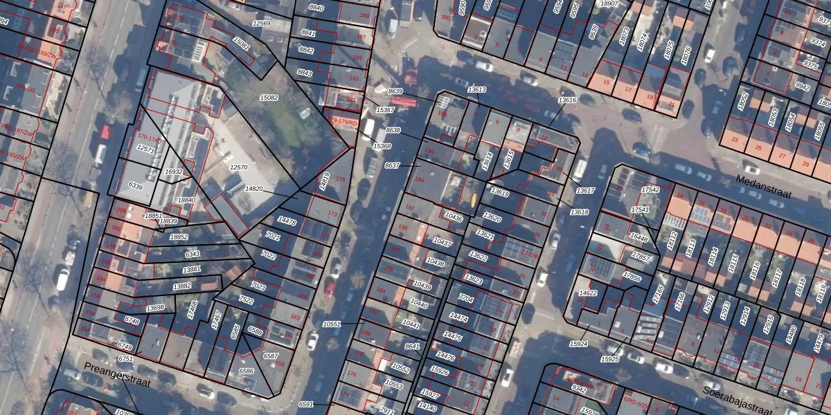 Het perceel waarop Timorstraat 192 staat heeft een oppervlakte van 92 m². Dit is een klein perceel. De perceeloppervlakte wordt geregistreerd door het Kadaster. Gedetailleerde informatie over de maten van dit perceel kunt u vinden in het rapport Kadastrale kaart met maatvoering van Timorstraat 192.