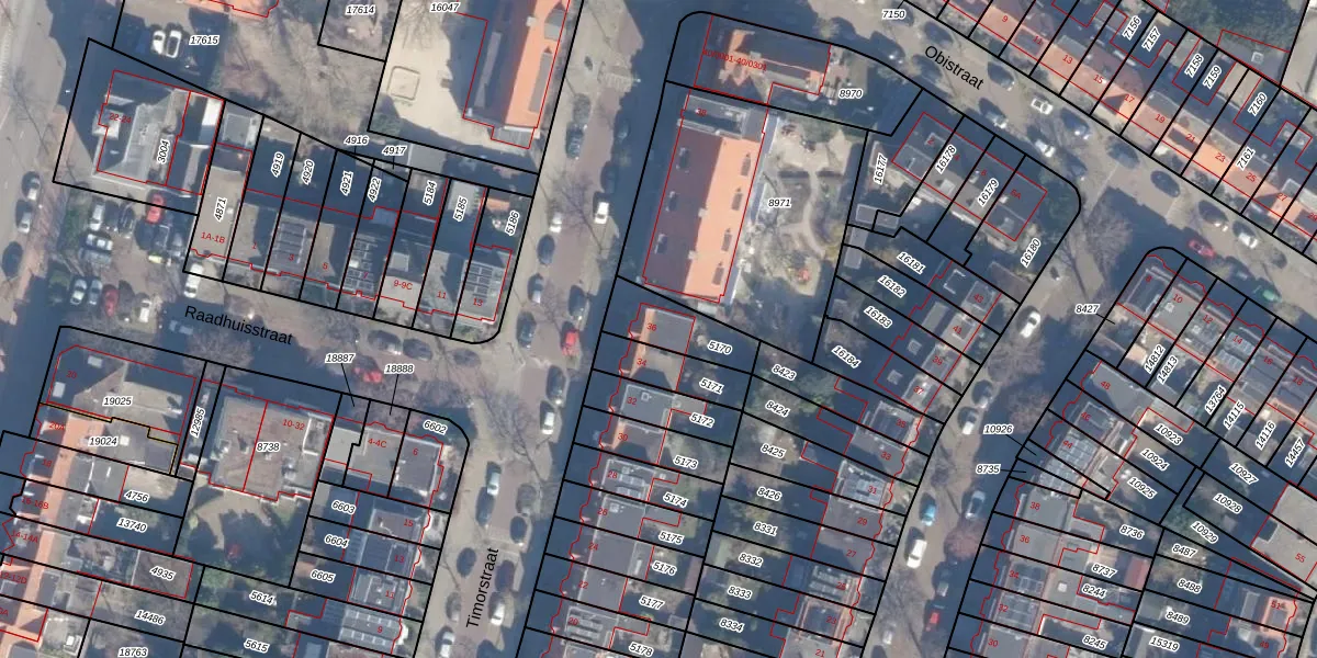 Het perceel waarop Timorstraat 36 staat heeft een oppervlakte van 171 m². Dit is een middelgroot perceel. De perceeloppervlakte wordt geregistreerd door het Kadaster. Gedetailleerde informatie over de maten van dit perceel kunt u vinden in het rapport Kadastrale kaart met maatvoering van Timorstraat 36.