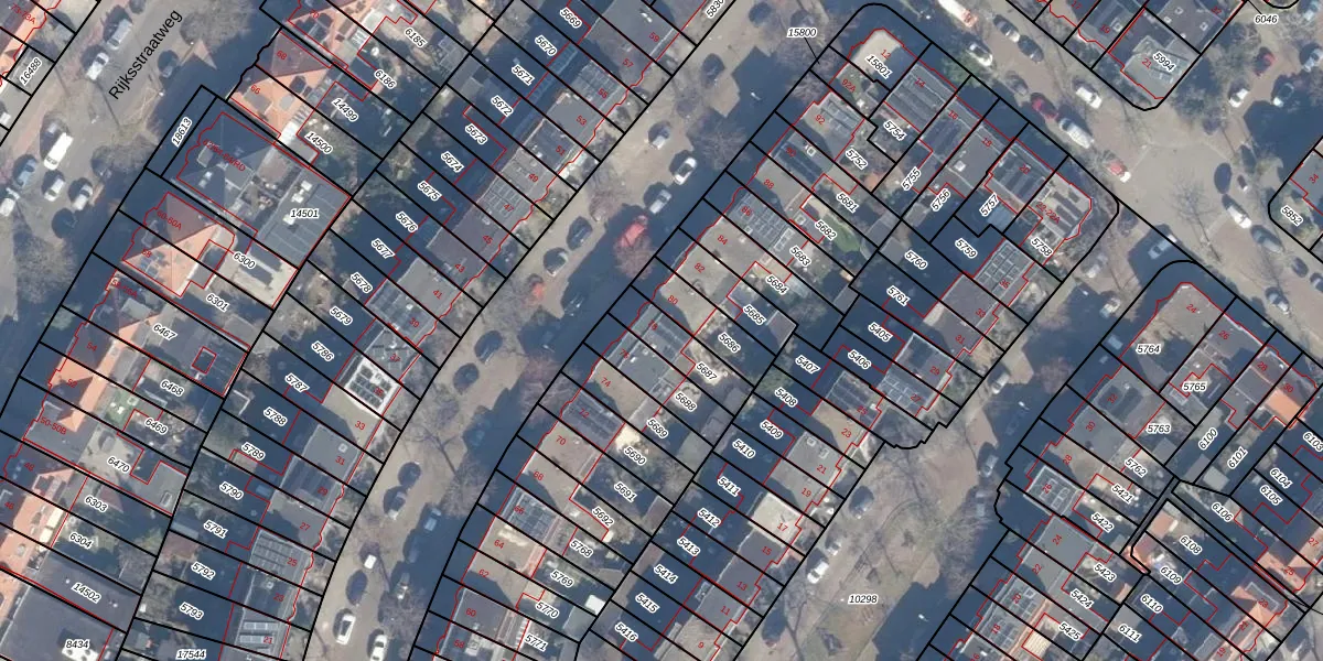 Gebruik de zoekbalk of klik op een perceel voor informatie over de adressen binnen dit perceel.