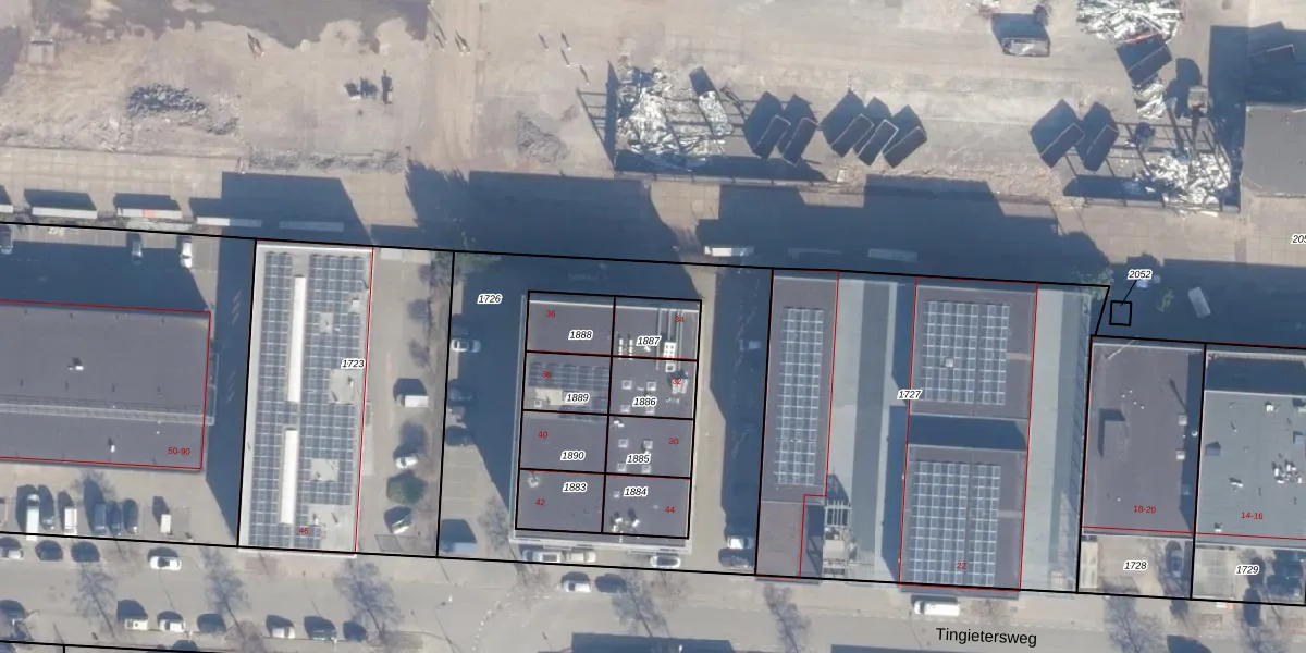 Gebruik de zoekbalk of klik op een perceel voor informatie over de adressen binnen dit perceel.