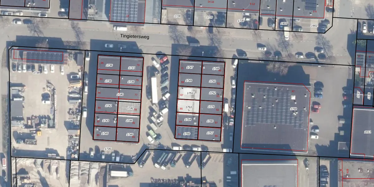 Gebruik de zoekbalk of klik op een perceel voor informatie over de adressen binnen dit perceel.
