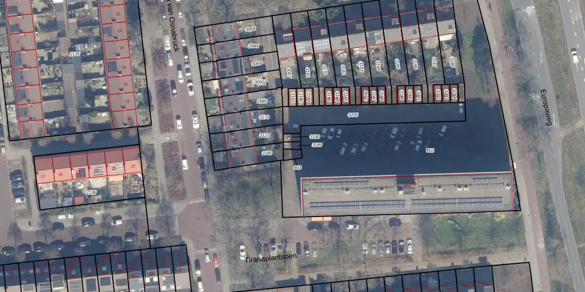 Gebruik de zoekbalk of klik op een perceel voor informatie over de adressen binnen dit perceel.