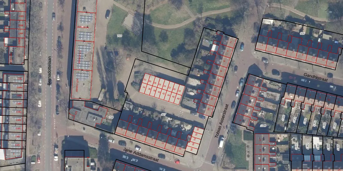 Het perceel waarop Tobias Asserstraat 22 staat heeft een oppervlakte van 2944 m². Dit is een zeer groot perceel. De perceeloppervlakte wordt geregistreerd door het Kadaster. Gedetailleerde informatie over de maten van dit perceel kunt u vinden in het rapport Kadastrale kaart met maatvoering van Tobias Asserstraat 22.
