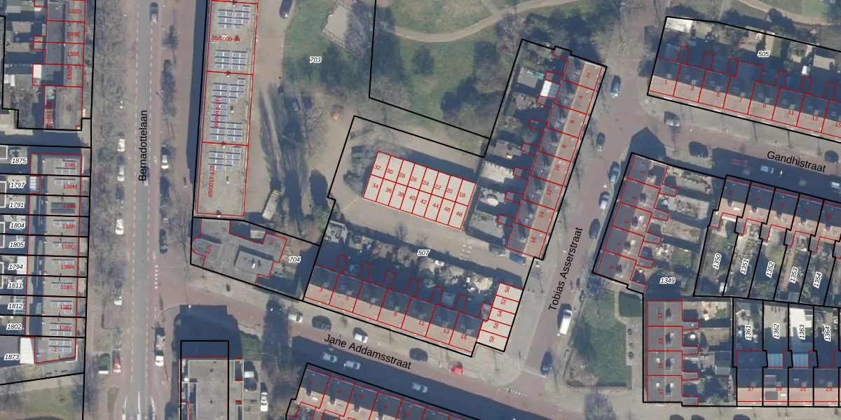 Tobias Asserstraat 42 is gelegen op kadastraal perceel HLM02X507. Deze kadastrale aanduiding is uniek en wordt gebruikt door het Kadaster om eigendomsrechten en andere zakelijke rechten vast te leggen. Het perceel maakt onderdeel uit van de kadastrale gemeente Haarlem.