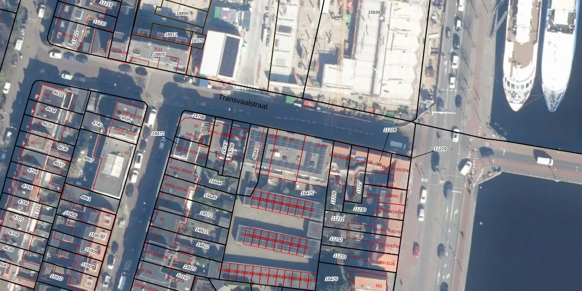 Het perceel waarop Transvaalstraat 12-C staat heeft een oppervlakte van 1502 m². Dit is een zeer groot perceel. De perceeloppervlakte wordt geregistreerd door het Kadaster. Gedetailleerde informatie over de maten van dit perceel kunt u vinden in het rapport Kadastrale kaart met maatvoering van Transvaalstraat 12-C.