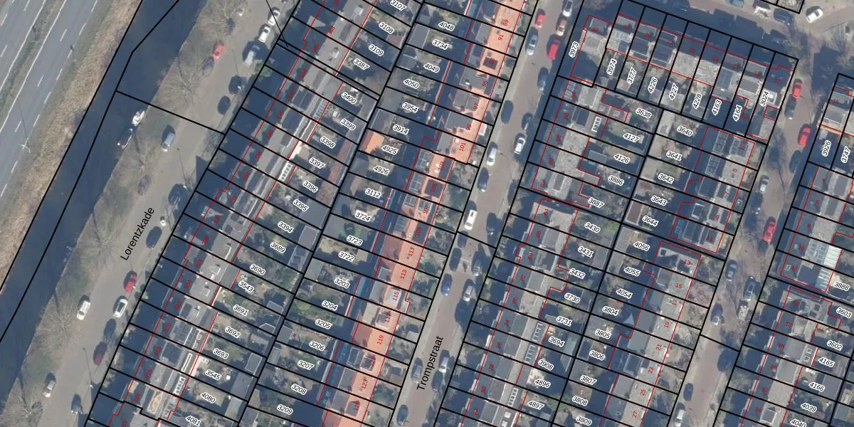 Gebruik de zoekbalk of klik op een perceel voor informatie over de adressen binnen dit perceel.