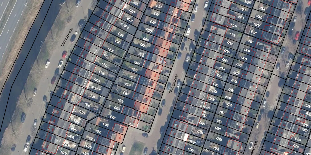 Trompstraat 119 is gelegen op kadastraal perceel HLM01I3205. Deze kadastrale aanduiding is uniek en wordt gebruikt door het Kadaster om eigendomsrechten en andere zakelijke rechten vast te leggen. Het perceel maakt onderdeel uit van de kadastrale gemeente Haarlem.