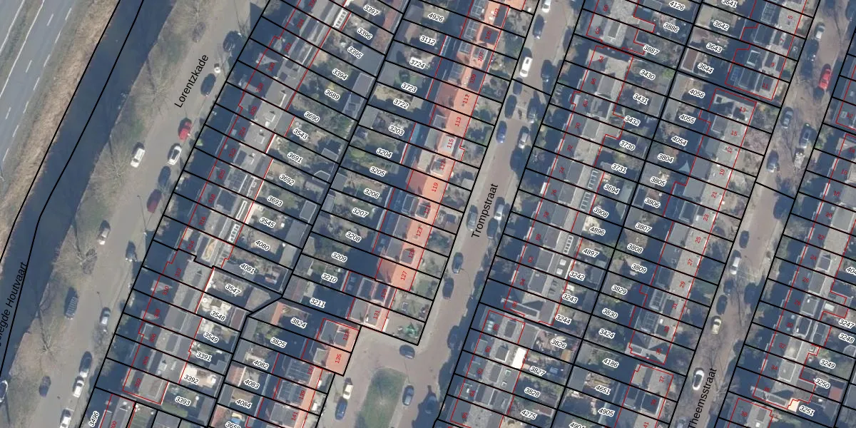 Trompstraat 121 is gelegen op kadastraal perceel HLM01I3206. Deze kadastrale aanduiding is uniek en wordt gebruikt door het Kadaster om eigendomsrechten en andere zakelijke rechten vast te leggen. Het perceel maakt onderdeel uit van de kadastrale gemeente Haarlem.