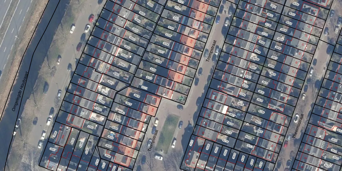 Gebruik de zoekbalk of klik op een perceel voor informatie over de adressen binnen dit perceel.
