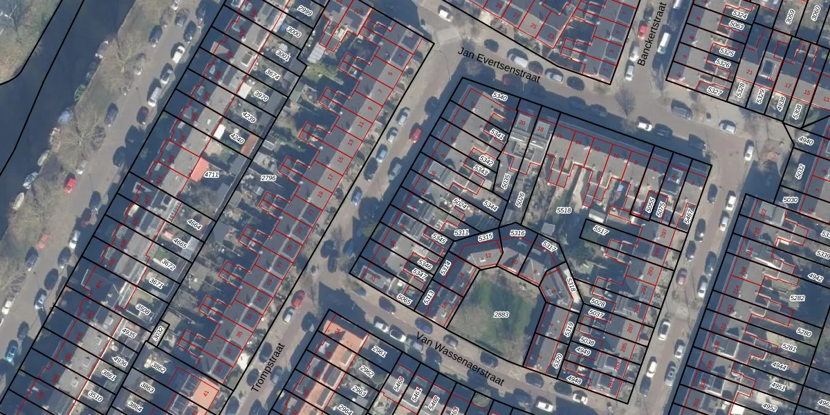 Het perceel waarop Trompstraat 14 staat heeft een oppervlakte van 103 m². Dit is een middelgroot perceel. De perceeloppervlakte wordt geregistreerd door het Kadaster. Gedetailleerde informatie over de maten van dit perceel kunt u vinden in het rapport Kadastrale kaart met maatvoering van Trompstraat 14.
