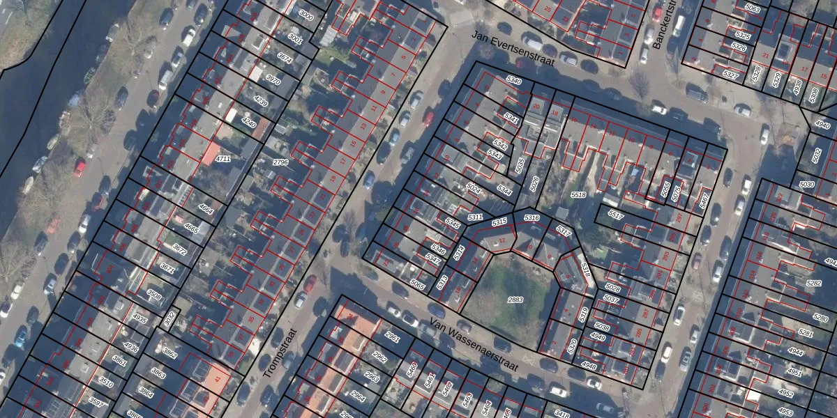 Het perceel waarop Trompstraat 16 staat heeft een oppervlakte van 87 m². Dit is een klein perceel. De perceeloppervlakte wordt geregistreerd door het Kadaster. Gedetailleerde informatie over de maten van dit perceel kunt u vinden in het rapport Kadastrale kaart met maatvoering van Trompstraat 16.