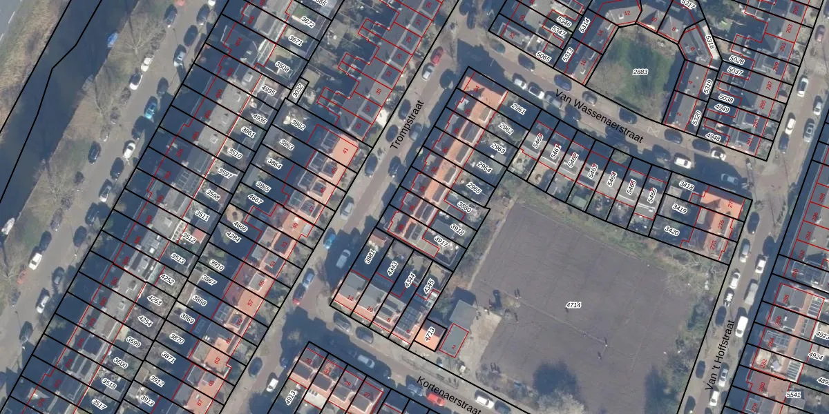 Trompstraat 36 is gelegen op kadastraal perceel HLM01I3918. Deze kadastrale aanduiding is uniek en wordt gebruikt door het Kadaster om eigendomsrechten en andere zakelijke rechten vast te leggen. Het perceel maakt onderdeel uit van de kadastrale gemeente Haarlem.