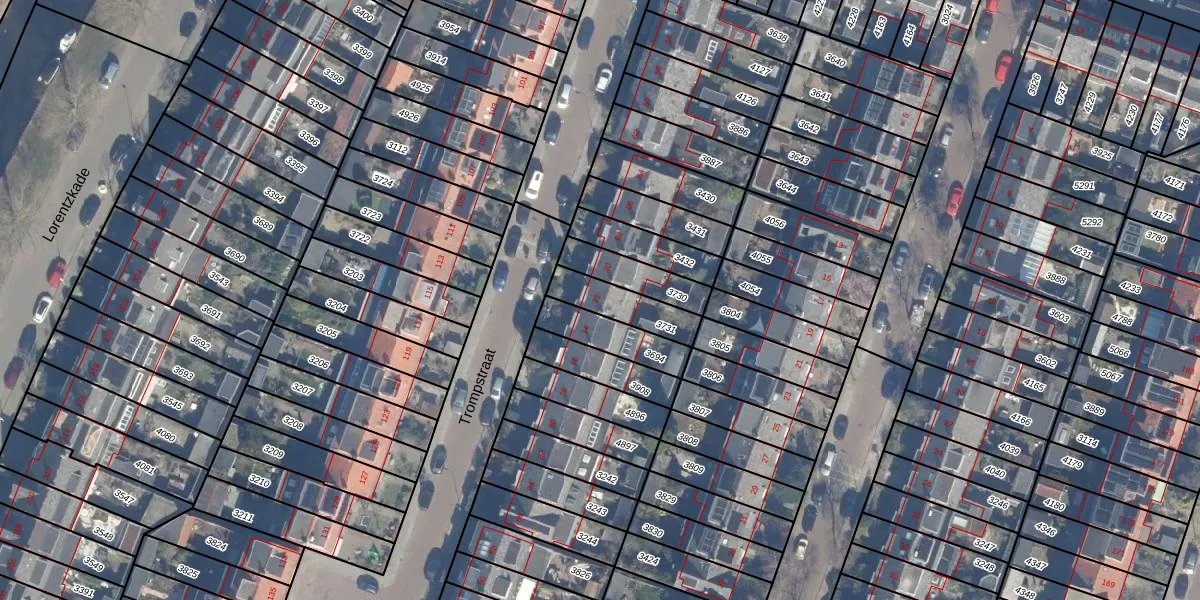 Gebruik de zoekbalk of klik op een perceel voor informatie over de adressen binnen dit perceel.