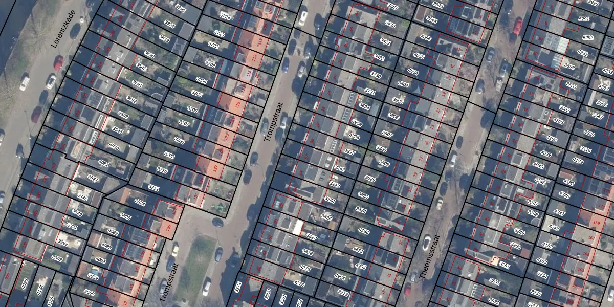 Het perceel waarop Trompstraat 82 staat heeft een oppervlakte van 141 m². Dit is een middelgroot perceel. De perceeloppervlakte wordt geregistreerd door het Kadaster. Gedetailleerde informatie over de maten van dit perceel kunt u vinden in het rapport Kadastrale kaart met maatvoering van Trompstraat 82.