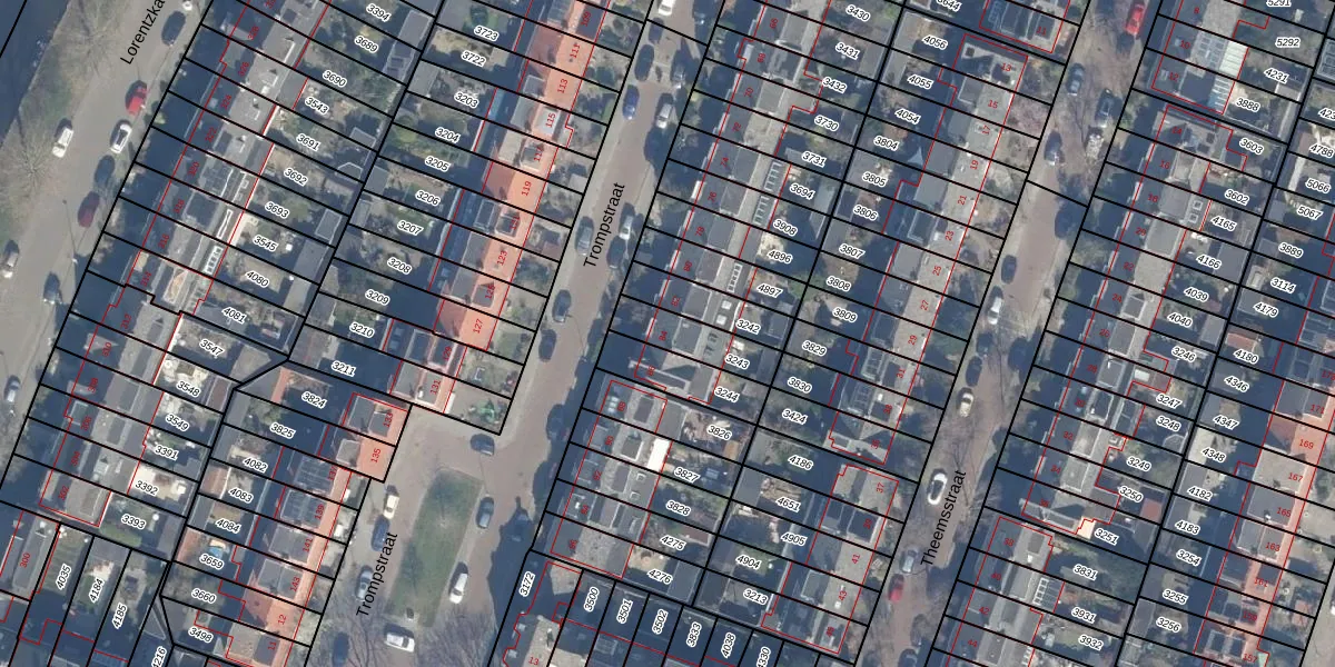 Gebruik de zoekbalk of klik op een perceel voor informatie over de adressen binnen dit perceel.