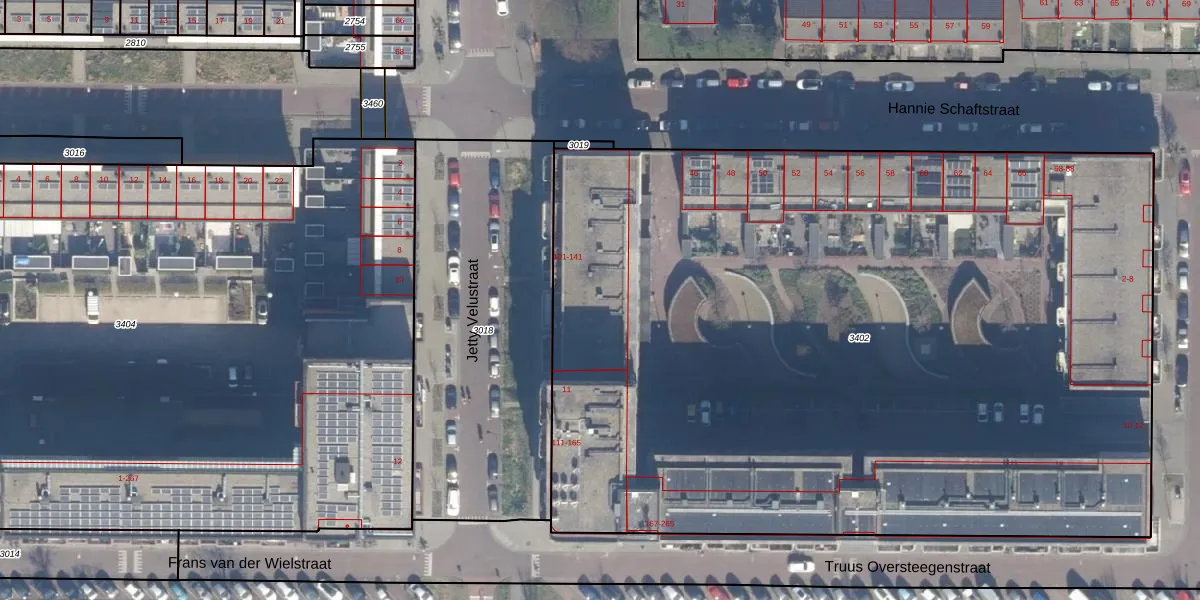 Truus Oversteegenstraat 107 is gelegen op kadastraal perceel HLM02Q3402. Deze kadastrale aanduiding is uniek en wordt gebruikt door het Kadaster om eigendomsrechten en andere zakelijke rechten vast te leggen. Het perceel maakt onderdeel uit van de kadastrale gemeente Haarlem.