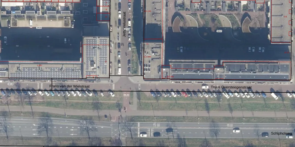 Truus Oversteegenstraat 165 is gelegen op kadastraal perceel HLM02Q3402. Deze kadastrale aanduiding is uniek en wordt gebruikt door het Kadaster om eigendomsrechten en andere zakelijke rechten vast te leggen. Het perceel maakt onderdeel uit van de kadastrale gemeente Haarlem.
