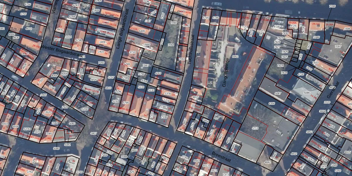 Het perceel waarop Tuchthuisstraat 12 staat heeft een oppervlakte van 126 m². Dit is een middelgroot perceel. De perceeloppervlakte wordt geregistreerd door het Kadaster. Gedetailleerde informatie over de maten van dit perceel kunt u vinden in het rapport Kadastrale kaart met maatvoering van Tuchthuisstraat 12.
