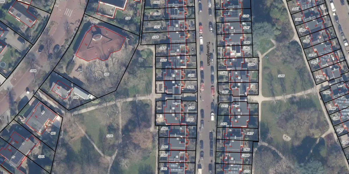 Het perceel waarop Tuinwijklaan 21 staat heeft een oppervlakte van 168 m². Dit is een middelgroot perceel. De perceeloppervlakte wordt geregistreerd door het Kadaster. Gedetailleerde informatie over de maten van dit perceel kunt u vinden in het rapport Kadastrale kaart met maatvoering van Tuinwijklaan 21.