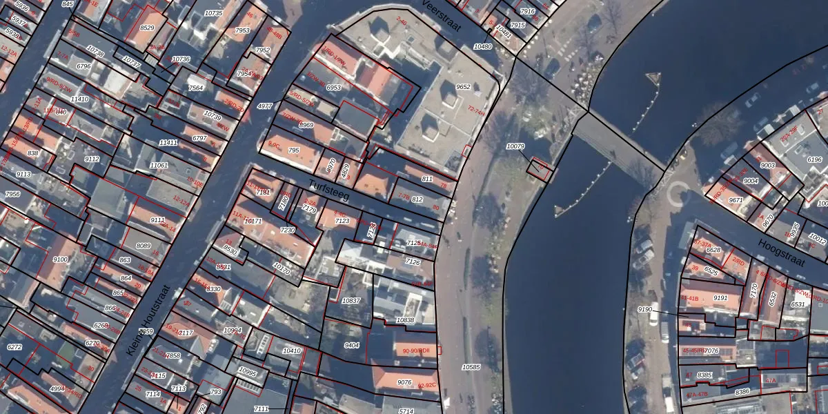 Het perceel waarop Turfsteeg 7 staat heeft een oppervlakte van 88 m². Dit is een klein perceel. De perceeloppervlakte wordt geregistreerd door het Kadaster. Gedetailleerde informatie over de maten van dit perceel kunt u vinden in het rapport Kadastrale kaart met maatvoering van Turfsteeg 7.