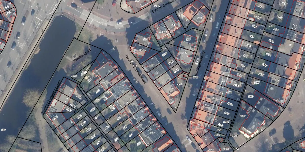 Gebruik de zoekbalk of klik op een perceel voor informatie over de adressen binnen dit perceel.