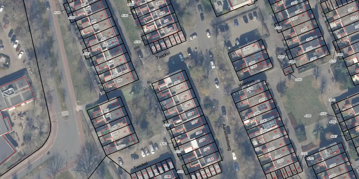 Het perceel waarop Twickel 37 staat heeft een oppervlakte van 108 m². Dit is een middelgroot perceel. De perceeloppervlakte wordt geregistreerd door het Kadaster. Gedetailleerde informatie over de maten van dit perceel kunt u vinden in het rapport Kadastrale kaart met maatvoering van Twickel 37.