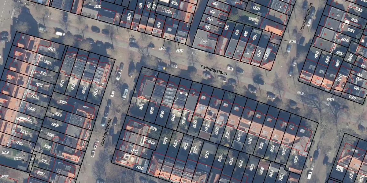 Twijnderslaan 16 is gelegen op kadastraal perceel HLM01K2333. Deze kadastrale aanduiding is uniek en wordt gebruikt door het Kadaster om eigendomsrechten en andere zakelijke rechten vast te leggen. Het perceel maakt onderdeel uit van de kadastrale gemeente Haarlem.