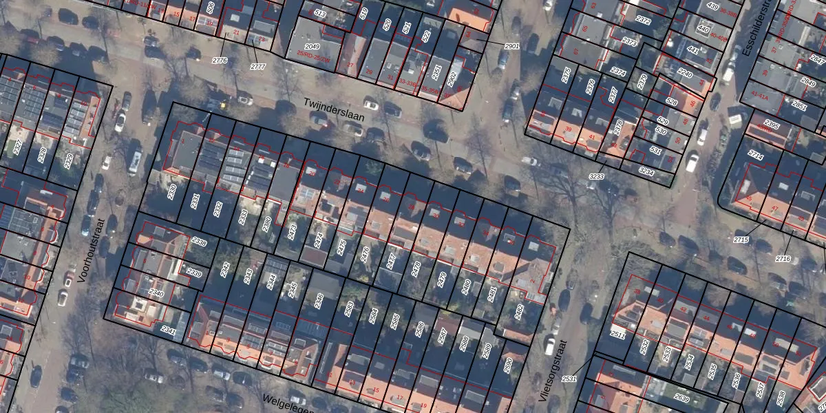Het perceel waarop Twijnderslaan 28 staat heeft een oppervlakte van 181 m². Dit is een middelgroot perceel. De perceeloppervlakte wordt geregistreerd door het Kadaster. Gedetailleerde informatie over de maten van dit perceel kunt u vinden in het rapport Kadastrale kaart met maatvoering van Twijnderslaan 28.