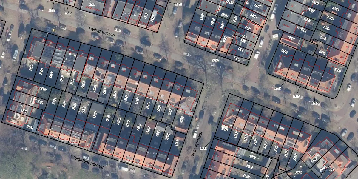 Het perceel waarop Twijnderslaan 36 staat heeft een oppervlakte van 177 m². Dit is een middelgroot perceel. De perceeloppervlakte wordt geregistreerd door het Kadaster. Gedetailleerde informatie over de maten van dit perceel kunt u vinden in het rapport Kadastrale kaart met maatvoering van Twijnderslaan 36.