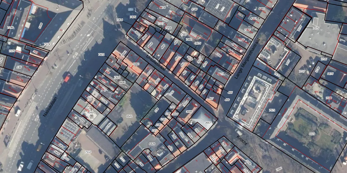 Het perceel waarop Ursulastraat 16-A staat heeft een oppervlakte van 86 m². Dit is een klein perceel. De perceeloppervlakte wordt geregistreerd door het Kadaster. Gedetailleerde informatie over de maten van dit perceel kunt u vinden in het rapport Kadastrale kaart met maatvoering van Ursulastraat 16-A.