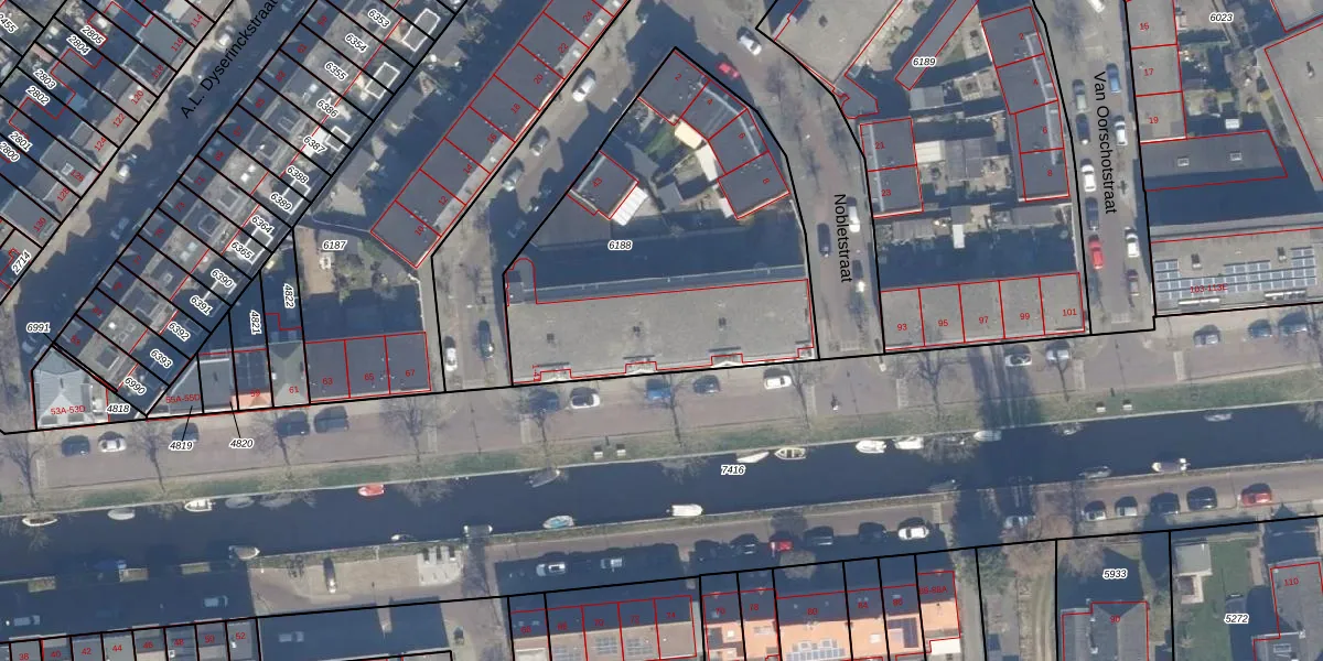 Het adres ligt op het perceel HLM01-E-6188, dat zich in de kadastrale gemeente Haarlem bevindt. Het perceel is met 1636 m² relatief groot. Het gemiddelde ligt in de kadastrale gemeente Haarlem op 328,33 m². Het kleinste perceel in de kadastrale gemeente is 0 m² groot. De grootste perceeloppervlakte is 13,9 ha. Op het perceel zijn 26 adressen aanwezig. De huidige grenzen van het perceel zijn digitaal in de Basisregistratie Kadaster (BRK) geregistreerd op 27-08-2001.