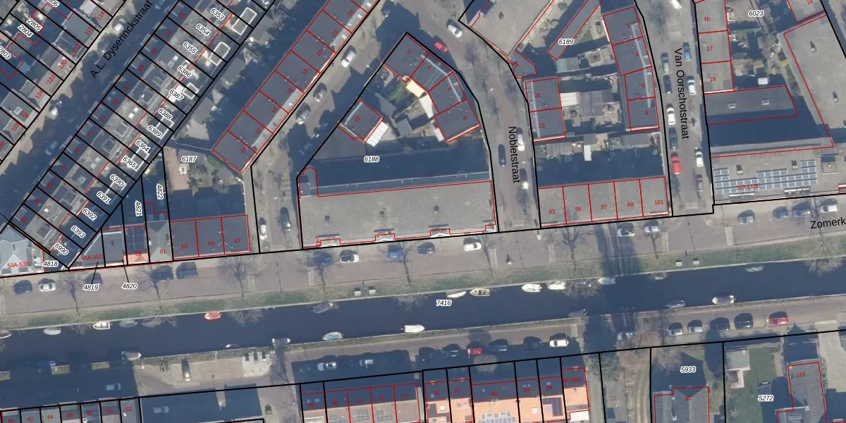 Het adres ligt op het perceel HLM01-E-6188, dat zich in de kadastrale gemeente Haarlem bevindt. Het perceel is met 1636 m² relatief groot. Het gemiddelde ligt in de kadastrale gemeente Haarlem op 328,33 m². Het kleinste perceel in de kadastrale gemeente is 0 m² groot. De grootste perceeloppervlakte is 13,9 ha. Op het perceel zijn 26 adressen aanwezig. In de Basisregistratie Kadaster (BRK) werden de grenzen van het perceel geregistreerd op 27-08-2001.