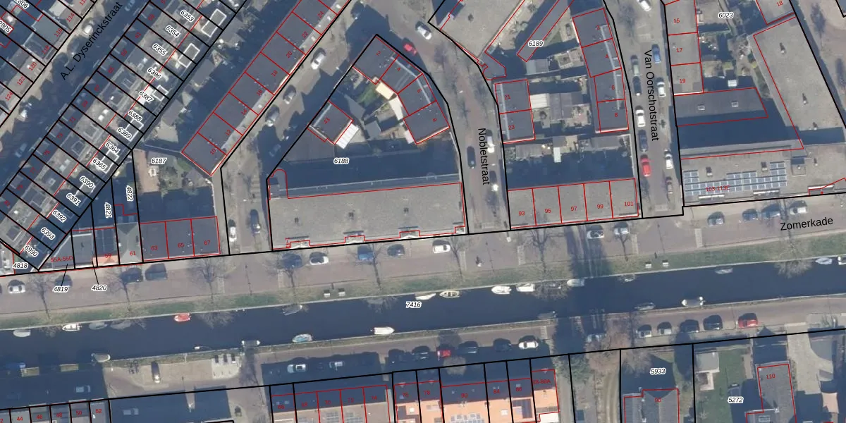 Het adres ligt op het perceel HLM01-E-6188, dat zich in de kadastrale gemeente Haarlem bevindt. Het perceel is met 1636 m² relatief groot. Het gemiddelde ligt in de kadastrale gemeente Haarlem op 328,33 m². Het kleinste perceel in de kadastrale gemeente is 0 m² groot. De grootste perceeloppervlakte is 13,9 ha. Op het perceel zijn 26 adressen aanwezig. De laatste wijziging in het de Basisregistratie Kadaster (BRK) was op 27-08-2001.