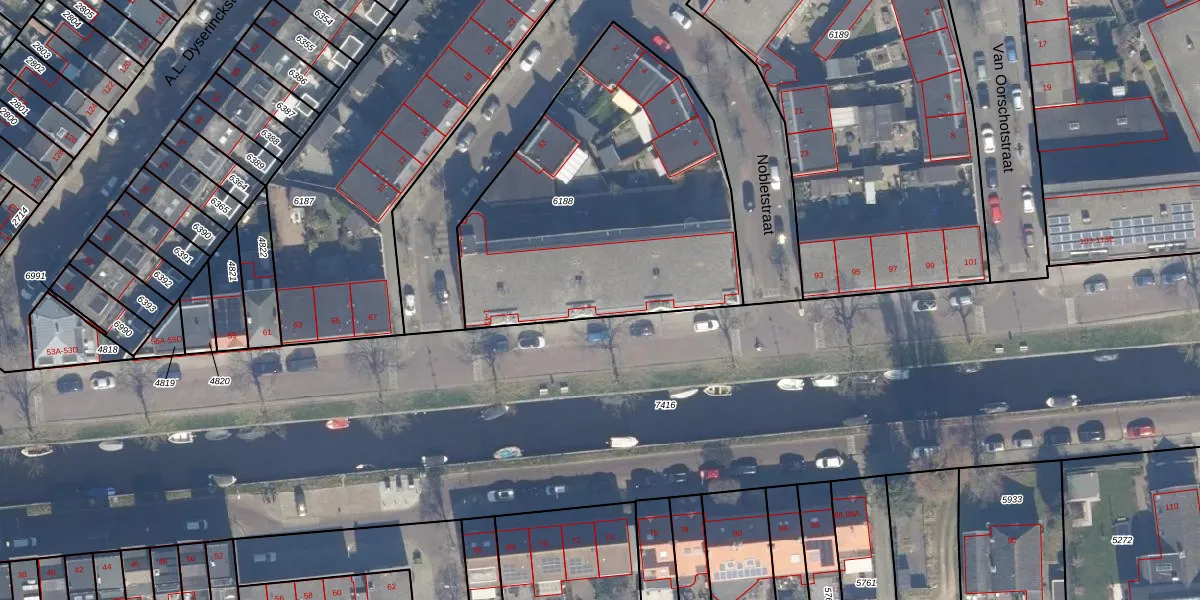 Het adres ligt op het perceel HLM01-E-6188, dat zich in de kadastrale gemeente Haarlem bevindt. Het perceel is met 1636 m² relatief groot. Het gemiddelde ligt in de kadastrale gemeente Haarlem op 328,33 m². Het kleinste perceel in de kadastrale gemeente is 0 m² groot. De grootste perceeloppervlakte is 13,9 ha. Op het perceel liggen in totaal 26 adressen. De laatste wijziging in het de Basisregistratie Kadaster (BRK) was op 27-08-2001.